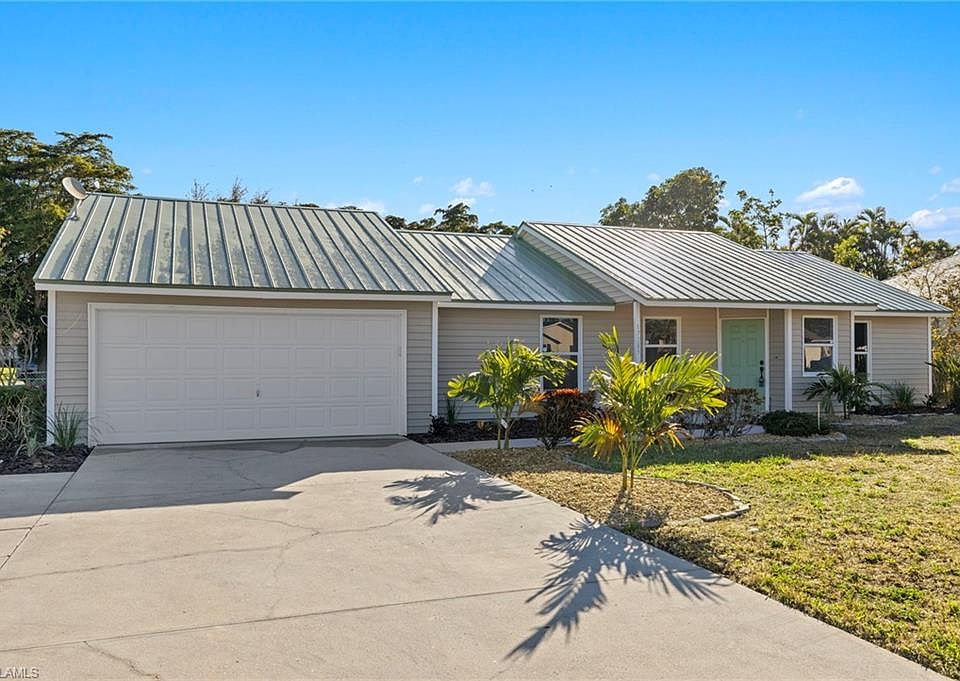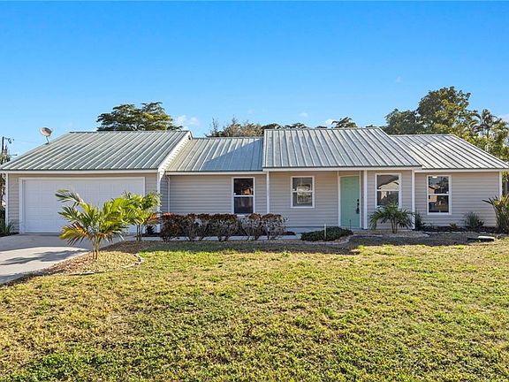 FULLY REMODELLED! Almost 1,600 feet of living space! LARGE CORNER LOT with FENCED in backyard. Durable METAL ROOF! AC-2021, All recently BRAND NEW: Tile on the diagonal, large baseboards, paint, kitchen and bathroom cabinets, granite countertops, stainless steel appliances, doors, master shower, toilets, lights, fans, fixtures, outlets, light switches, garage motor, etc. CITY WATER! NO Parking, Pet, or Rental restrictions so bring all investors. Close to schools, beaches, and dining! This will not last long at this price and in the ever growing area of San Carlos Park!
