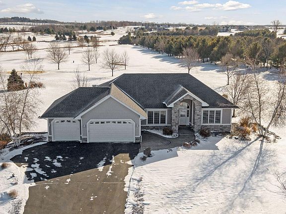 Welcome to this amazing 3BD 3BA rambler overflowing with charm. Nestled on 1.7 acres this stunning golf course property is a must-see. Enter into an amazing, vaulted living space w/showstopping stone gas fireplace & accent wall. Kitchen features stainless steel appliances, granite countertops, a wine cooler, beautiful stone backsplash & golf course views. Stoke the fire and cozy up on the three-season porch. Bright & airy primary oasis offers private bath w/dual sink vanity, inviting soaker tub & luxurious walk-in shower. Gorgeous flooring and finishes throughout. Entertaining is made easy in the lower-level great room complete w/wet bar & walk-out access to a beautiful paver patio. Bedroom, full bath & two bonus rooms for endless possibilities. A three-car finished garage offers plenty of storage space. Additional lower-level garage is heated w/separate workshop area for tools & toys. Home inspection has been completed for you. See supplements for photos, 3D tour, floorplans & more.