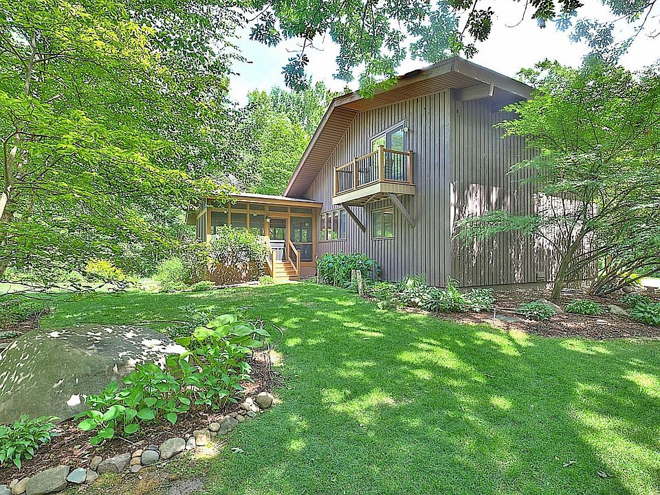 Stunning, loft-style, 3BD/2BA home tucked back in the woods spanning 5 acres of full privacy! Meticulously maintained and updated, this home boasts Andersen windows, vaulted cedar ceilings, exposed beams, quartz counters, newer SS appliances, main-floor laundry, and an oversized 2-car garage. Enjoy morning coffee on the master bedroom balcony or within the vaulted screened porch. And finish your day in the exquisite master suite overlooking the main-floor. Truly a one-of-a-kind home-watch the Virtual Tour!