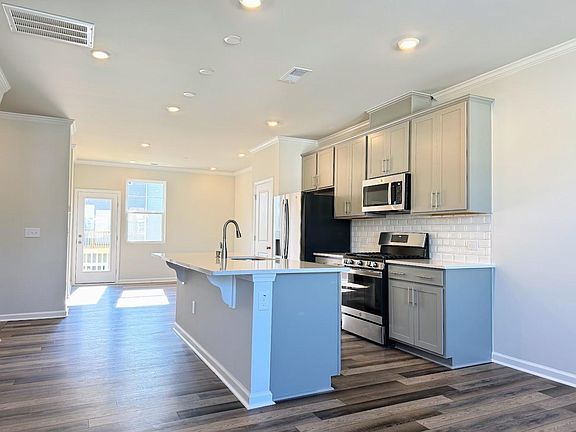 Beautiful townhome offers luxury living and unparalleled convenience. 3 bedrooms, 3.5 bathrooms. The first floor features a versatile bedroom with a full bath, ideal for a private office or welcoming guest suite. The second floor showcases a spacious great room with an open-concept layout connecting to the kitchen, complete with stainless steel appliances, quartz countertops, and a large center island. Step out onto the deck for outdoor relaxation. Master with dual vanity, standing shower, and walk in closet. Enjoy amenities such as high-speed internet and access to the community clubhouse, swimming pool, playground, and dog park. Perfectly positioned near top-rated schools, major highways, and popular shopping centers. This home offers easy access to RTP, RDU, Hwy 55, and I-540, ensuring that everything you need is just minutes away.