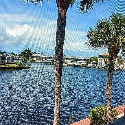 Beautifully Updated Sailboat Access Condominium in 55 & Over Complex located in one of the most desirable areas of Cape Coral. Close proximity to Shopping, Restaurants, & a short walk down the street to Jaycee Park. Boat Dockage is Free and on a 1st come, 1st serve basis with plenty of availability for up to 23 ft boat. Spacious 2nd Floor 3 Bedroom Split floor Plan with Living Room, Dining Room, custom cabinet kitchen, granite counter tops and new appliances.Indoor Laundry with cabinets for extra storage. Lanai with impact slider doors and new screening. New Impact Resistant Windows & New Roof on bldg. This complex also offers a private community pool overlooking the water, and only 100 ft. away from this unit. Jaycee Park is a short walk down the street with views of the Waterway. Low HOA fees and 2 parking spaces