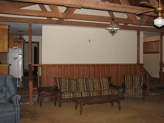 Country Living At Its BEST! Very secluded property with 4.54 acres. Features a large STONE fireplace with gas logs, built in cabinets, cathedral ceiling made with wood rafters, dishwasher, stove, microwave, frig, washer and dryer convey. Breakfast area. 2 large porches, 2 car insulated shop/garage. 3 Bay shed with 2 additional shelters. Large piece of property with tons of trees for shade and your privacy. OUTDOORS MAN/WOMAN'S DREAM HOME. Owner financing available! Seller will install new HVAC system and storm windows with acceptable offer.