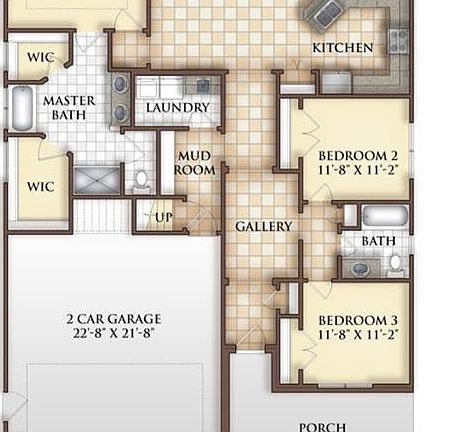 The "Lauren" plan features an open floor plan, 3 bed 3 baths, laundry room off of mud room, kitchen with granite counter tops that open to dining area and family room. Master bedroom has master bath with 2 walk-in closets. Bedrooms 2 and 3 are separated by a Jack & Jill bathroom. Play room with full bath above the 2 car garage. The neighborhood is minutes from downtown Fayetteville and features community amenities such as an in-ground pool, fitness center, volleyball court, tennis court, and clubhouse with a gathering room.