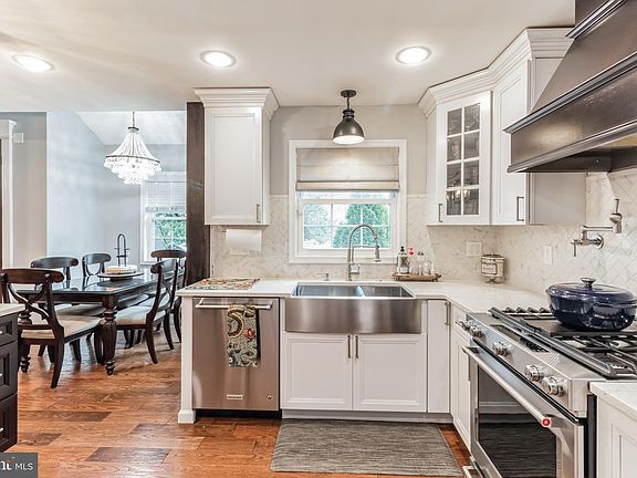 Discover the epitome of refined living with this exceptional and unique Cape-style home that redefines luxury at every corner. As you approach, be captivated by its charming curb appeal and meticulously designed hardscape that beckons you inside. Step through the grand entrance, and the Great Room unfolds before you, seamlessly blending elegance and functionality. Prepare to be amazed by the gourmet kitchen that stands as a testament to meticulous craftsmanship and attention to detail. High-end, pristine white cabinetry graced by exquisite Quartz countertops immediately catch your eye. A sophisticated herringbone-patterned tile backsplash complements it perfectly, surrounding a double farm sink. For the culinary enthusiast, a chef's dream awaits – a 5-burner gas stove alongside a suite of Stainless Steel appliances, all thoughtfully coordinated. The oversized island stands as a centerpiece, offering both storage and a practical bar stool seating area. Adjacent to the kitchen, the Breakfast room with vaulted ceilings awaits, creating an idyllic spot for relaxed meals. The Den flows seamlessly from the kitchen, aglow with natural light pouring in through numerous windows. From here, open the door and step out into your outdoor oasis begins. This fully fenced outdoor sanctuary is highlighted by a sprawling paver patio crowned by a pergola – a haven for relaxation and entertainment. The main level isn't just a masterpiece of design; it's a sanctuary of comfort. Two generously sized bedrooms share a beautifully renovated full bath, while a walk-in pantry/laundry room provides both convenience and extra storage. The Recreation Room with its pocket door offers flexibility for your lifestyle needs, and the turned staircase itself is a work of art, adorned with wrought-iron style balusters. The second floor unveils a private haven, complete with the Owner's Suite boasting a vaulted ceiling and recessed lighting. A spacious, organized walk-in closet adds a touch of opulence, while the full bathroom epitomizes spa-like indulgence. Luxurious porcelain, marble-look tiles grace the space, accompanied by a sleek glass shower enclosure, dual shower heads, a double vanity, and an elegant soaker tub. Should you need extra space, the Sitting Room (currently a nursery) offers the option to be converted into an additional bedroom or office. Beyond aesthetics, practicality thrives. A 2-car detached garage with dual entrances at the front and rear, stands ready to shelter both your vehicles and outdoor equipment. Additional storage awaits above the garage's upper level, ensuring a place for everything. This home isn't just a dwelling; it's a testament to the extraordinary. If you're seeking a lifestyle that blends luxury, comfort, and functionality, look no further. Your dream home awaits!