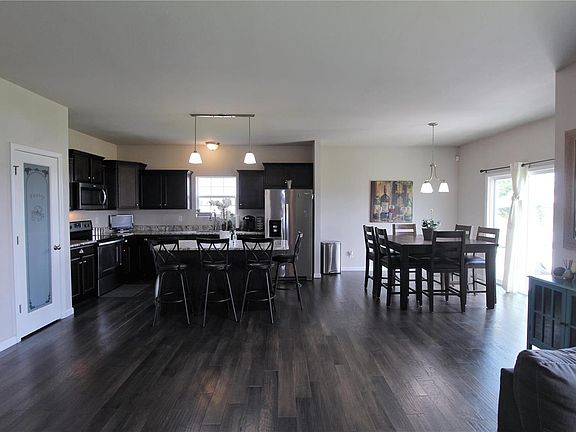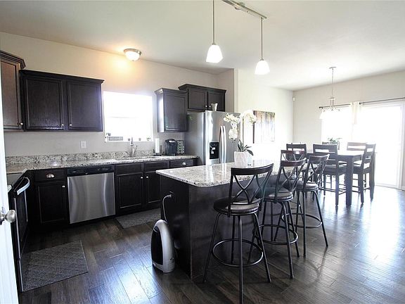 This beautiful 3 bed/2 bath ranch offers a split bedroom design and an open concept living room/kitchen. The welcoming entry leads you to the two good sized guest bedrooms with carpeting and guest bath. Down the hall you will find the main floor laundry and access to the 3 car garage. The kitchen features granite countertops, center island, pantry closet and stainless steel appliances, with the dining area leading you to the back patio. The spacious living room offers plenty of natural lighting, while the master suite has a 10x6 walk in closet and double sinks in the master bath. The full unfinished basement has plenty of square feet ready to be finished with your personal touch. Outside you will find a nice patio and room to roam in the partially fenced yard. The only thing this beautiful home is missing is you, make your appointment today!