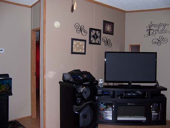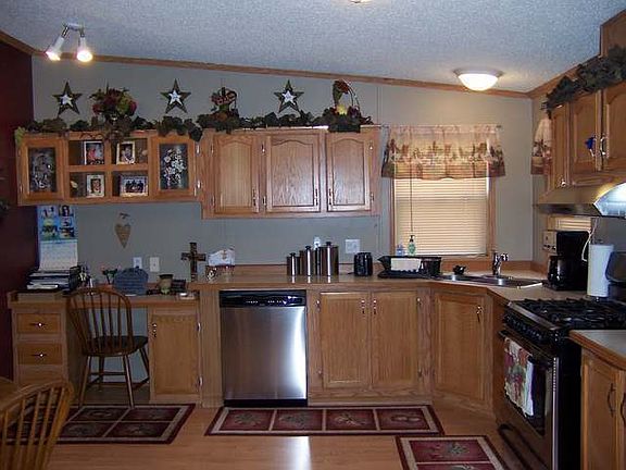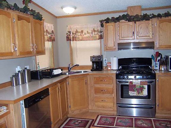 This is a very clean and well kept home. There is a master bedroom and bath along with 2 other bedrooms. Another bath off of the main living area. Kitchen has good cabinet space along with stainless appliances-gas stove- next to the side entry where the washer and dryer are located. They are included as well as all of the window treatments. Newer gutters and skirting on the unit. Large front yard and fenced rear yard along with a large storage shed and firepit. Nice wood deck of of the side entry leading to the backyard.