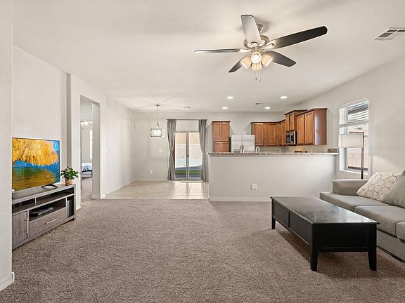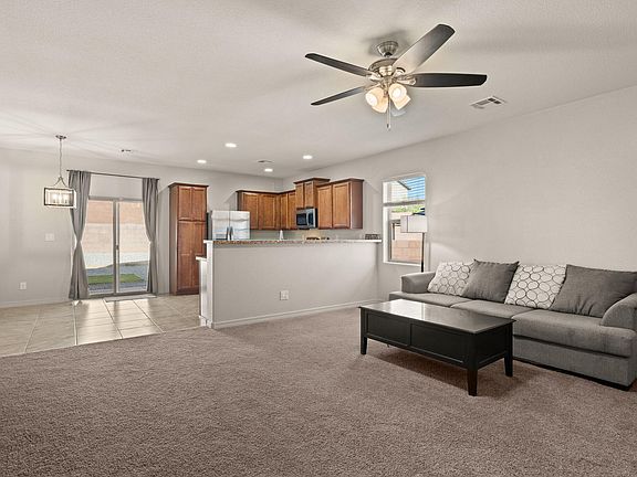 Move in ready 3 bedroom, 2 bath gem in Rio Rancho with refrigerated AC offers an open floor plan. The gorgeous kitchen has dark wood cabinets, stainless steel appliances, gas range and a spacious dining area. Xeriscaped backyard is easy to maintain and no HOA, no PID!
