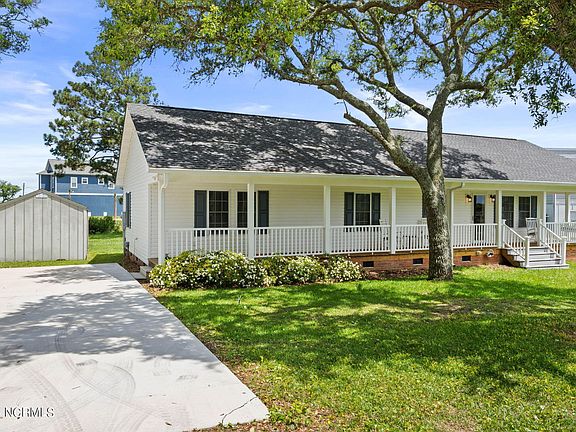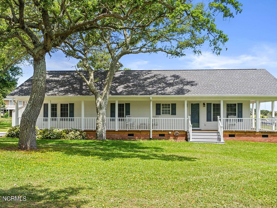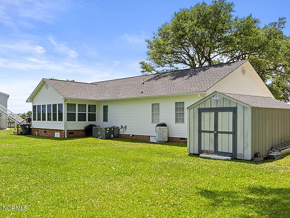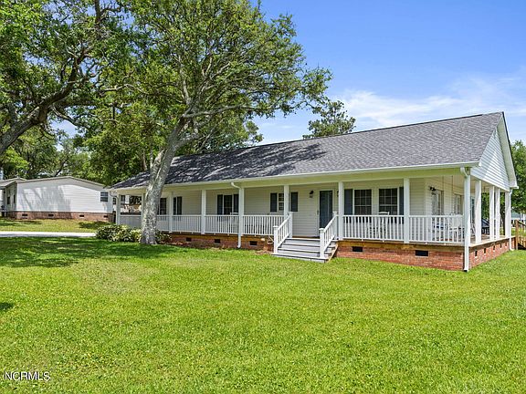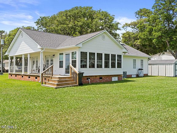 THIS IS A STICK BUILT HOME, (but must list as man home see agent.) LOCATION is the name of the game! This home is located on .31 acres with wonderful unobstructed views of the ICW. Also in a very peaceful setting, just one house from the ICW. This two bedroom home also has a window to window sunroom that overlooks the ICW. .Just beautiful! The house is 1440 sq feet and the sun room (not vented) is 168 sq feet for a total of living space of 1608 sq feet. There is a large length of house covered front porch and a side porch that catches the wonderful breezes from the water. Pick a rocking chair or a swing! New Roof is 2018. Current sellers had the crawl space encapsulated with dehumidifier and monitored. Plenty of room for tools and beach toys in the 10 by 16 shed that is next to the home. Upgrades that sellers have made are numerous and include a new kitchen with granite counter tops, stainless appliances, kitchen island that houses flat top electric stove, complete new high end LVP flooring throughout; freshly painted, French doors at access to sun room, and high end and very beachy furniture. A fireplace is a center piece to the living area. A nice walk-in closet in the master for plenty of your beach clothes. The exterior railing and columns are vinyl so minimum maintenance. This community for $200 a year offers its residents a dock over the ICW and a boat ramp for ICW access. This is optional. The property is enhanced with beautiful trees offering shade....and of course wonderful water views. Not to be missed!