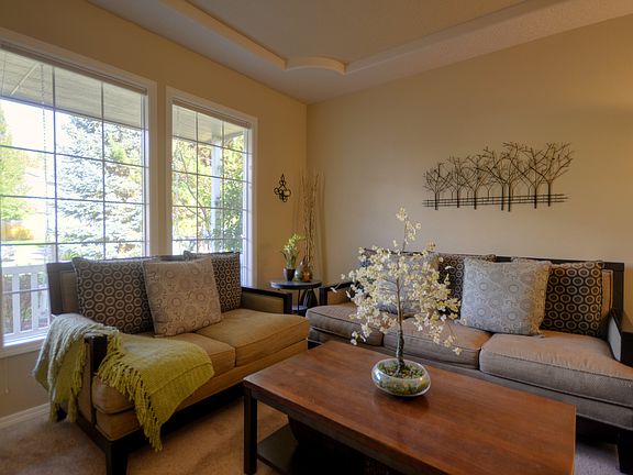 Gorgeous & private setting backs right up to manicured common area w/ terrific park amenities...paths, playgrounds, tennis courts, & views! Main level bedroom & full bath perfect for guests or secluded office. Spacious Kitchen & eating area w/ arched opening into family/living room. Formal dining, elegant coffered ceilings, window ledges, great natural light, covered patio & front porch. You'll really enjoy the beautiful backyard haven w/ mature & lush landscaping & even a side yard dog run! Just minutes to Micron & Boise Airport.