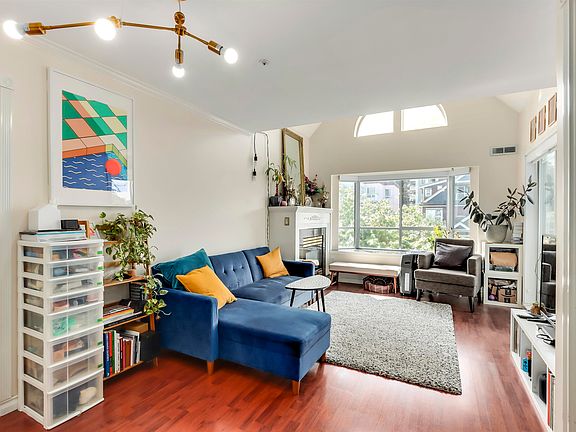 A rarely available 2 bedroom, corner home located just off of sought-after Commercial Drive. Vaulted ceilings and oversized rooms offer a large space to come home to.Corner unit with very little neighbour overlap above, this is the ideal private setting to cozy up by your gas fireplace on dark winter days or enjoy a cocktail and bbq on the sunny southwest facing deck in the summer. Light filled living spaces flow seamlessly with so many options to update with your personal style! Located on a quiet street, this home has it all! Georgia Court is a boutique building surrounded by greenery and lush garden spaces w/ a very pro active strata! Walking distance to restaurants, Bosa foods, parks, breweries & cafes, 2 parking,Storage.Rentals and pets allowed.10 mins to Downtown, 5 mins to skytrain.