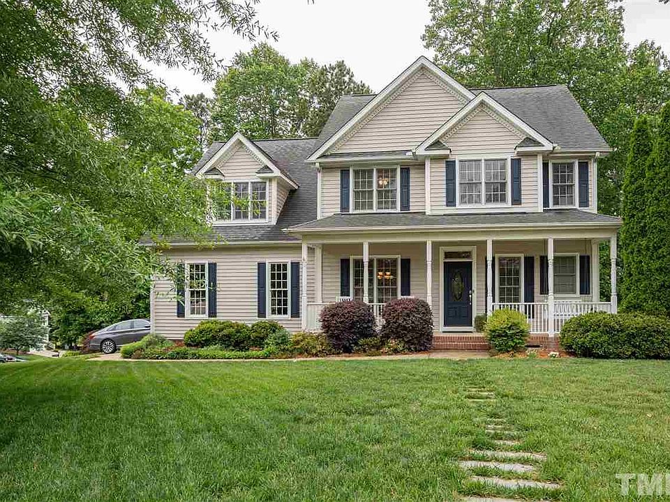 Lg corner lot w/side load double gar, beautiful mature trees, iron fencing, plenty of shade. Enjoy upper screened deck overlooking backyard. Five min. to downtown Wake Forest & N. Raleigh. 4 br, 3.5 ba, Owner's Suite on Main:tile & garden tub/shower ,lg walk in closet w/built in cabinets, eat in kit, living rm w/built in bookshelves, formal dr. 2nd flr: 3 brs, 2ba, huge bonus for games or entertaining. Huge walkin floored attic with window could be another huge room. Laundry room up.