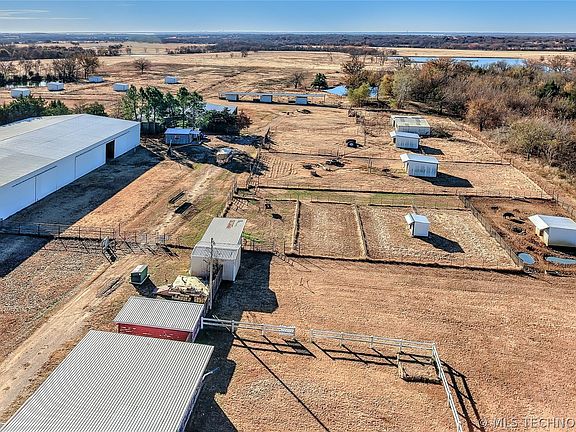 Equine Training and Boarding Facility on 13.62 acres. The property includes a 3 bd, 2 ba mfd home on permanent foundation. Many of the amenities on this property include; 90 X 130 horse arena, barn with 24 stalls, 4 stall stud barn, vet room, 2 tanks, 4 pastures, 4 horse hot walker and 10 lean-to style horse/animal sheds. Included in acreage is an additional home site with utilities readily available. Located conveniently just east of Kingston on Hwy 70 and less than 2 miles to Lake Texoma.