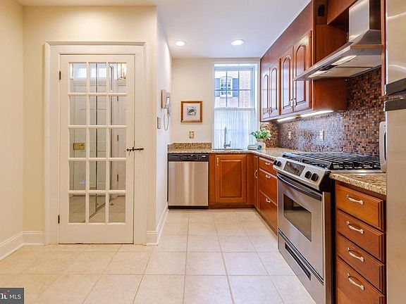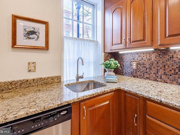 This beautifully restored and lovingly maintained historic row house combines the best of fine historic finishes and modern amenities. You must see this house to truly appreciate all the attention to detail. Architecturally designed to maximize the space and storage on every level, this home has a bright and airy open floor plan that flows out to the garden and terraces on every level. The main floor features an entry vestibule, modern kitchen with counter-height dining, a custom-built dining table with banquette seating that can expand to seat a large dinner party, a two-story windowed light-well, crown molding, chair rails and built-ins, a wood burning fireplace in the living room and French doors leading to the terraced, landscaped yard. The yard features mature landscaping, crepe myrtle trees, lighting and an irrigation system. Private, secure access to the nearby alley and street is available via a charming path at the rear of the yard. The primary suite spans the second floor with a spacious bath and walk-in closet in the front of the house, including a soaking tub and separate water closet with a standing shower and toilet. The primary bedroom is on the back of the house, with a wood burning fireplace, closets and built-ins and French doors leading to a covered terrace overlooking the lower yard. The third floor has two bedrooms, one in the front and a second in the back, with French doors leading to another covered terrace. Between the bedrooms, there is a full bath, spacious laundry room, and a double closet and additional closet, both with upper storage, in the center of the house. The center of the home has abundant natural light, with windows on every level.*****Here are some of the special features and items in this home: 19th century lockset on front door, newly refinished brass exterior entry light, antique beveled mirror built-in the vestibule wall, Bisazza Italian glass tile kitchen backsplash, central vacuum system, vintage random width heartwood yellow pine flooring laid with cut nails, and Williamsburg style brass candle wall sconces with hand-blown glass globes. This house is listed on The National Register Fell's Point Historic District.