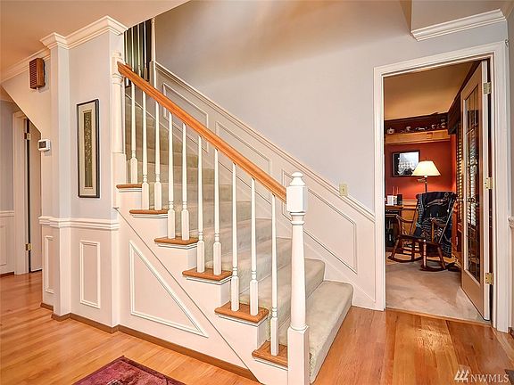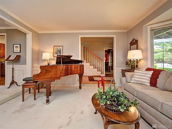 Owner is Washington State licensed Real Estate Broker. Original Owner. Beautifully maintained 2-story close to schools. Formal Entry, Living Rm and Dining Rm. 4 bedroom or 3 plus office. 2.5 baths. Granite and Stainless Kitchen. Family Rm and full Laundry. Beautiful 3/4" oak floor, crown molding, wainscot and shadow boxing. Solid fir 6 panel doors throughout. 2X6 perimeter framing. Architectural roof installed in 2017. Exterior paint 2016. Large deck and paver patio overlooking gorgeous lawn and over 40 Rhodies, hydrangeas, lilacs and azaleas. Additional 1000sf of land at south end of property is used by easement.