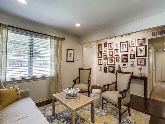Wonderful, updated home in coveted Crestview neighborhood of East Dallas; Welcoming covered front porch; wood laminate flooring throughout; Kitchen boasts granite tile counter tops, stainless sink, double oven, island, tile floor, and opens to large den; Large master bedroom features three closets; Secondary bedrooms are generously sized; Awesome covered backyard deck, large yard, and attached storage; Additional storage in garage and floored attic space.
