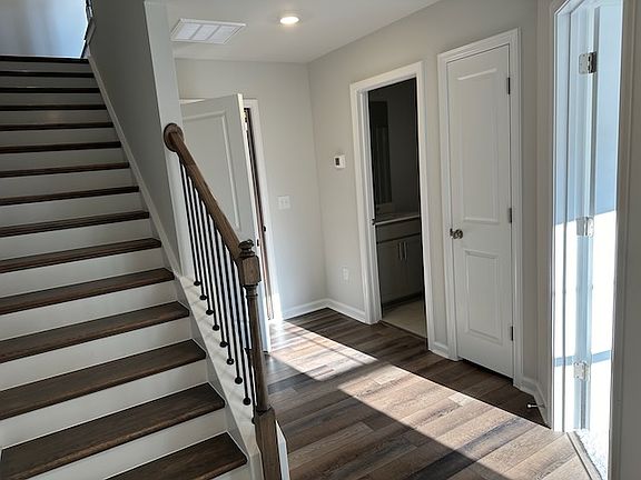 This new three-story townhome is designed for ease and comfort, with a secluded first-level bedroom. The second level has an open-plan main living area and a deck for sipping sweet tea. Both third-level bedrooms, including the luxe owner's suite, have walk-in closets. Internet included. Move in without needing to buy appliances or washer/dryer. Brand new home with access to I-540 within 2 minutes(opening route to Raleigh by Sep end). Amazing community amenities - see it to believe it(Pool, club house, Picnic area, Playground). Lots of walking trails, deep 1-car garage with lots of parking in front of the home and on the driveway, in a great planned community. Connected home with Wi-Fi thermostats, Ring video-door bell, keypad for front door.