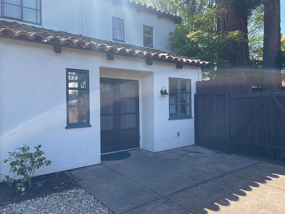 This gorgeous 1 bedroom, 1 1/2 bath duplex home in Santa Rosa's highly desirable MacDonald Neighborhood features early California design and luxury finishes throughout. The spacious terracotta tiled great room boasts double French doors, arched bookcases, hand forged iron lanterns, a light-flooded dining nook. The modern kitchen features stainless steel appliances, soapstone style quartz countertops, electric range with double ovens, microwave, and dishwasher. The large carpeted bedroom is accented by an arched bed niche. Its tiled en suite bath features period details and modern glass shower over soaking tub. Concealed corridor laundry is equipped with full sized washer, dryer, and sink. The entry, patio, and large low maintenance yard with flowers and fruit trees may be accessed from the street or via the double gated rose arbor opening to the rear alley. Owner pays PGE, water, garbage, and weekly gardening. Small pets possible with additional deposit. No smoking of any kind on property. Income of 3x rent and credit score of 700+ required. Owner pays water, garbage, gas and electric; tenant pays personal utilizes (cable, wifi, etc.)