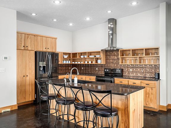 Discover the ultimate escape with this exceptional home now available to the public. Located on just under 6 acres, this compound-style property offers unparalleled privacy and tranquility, surrounded by 8-foot concrete walls and lush landscaping. Constructed mostly of concrete and owned by the same family since it was built, this home is designed for durability and longevity. Its open floor plan is perfect for entertaining or accommodating large families, with the heart of the home centered around a wonderful kitchen featuring custom maple cabinetry, granite countertops, and stainless-steel appliances. Thoughtful design elements abound, including built-ins, custom tile work on the stairs, high-end fixtures, and well-placed windows that flood the home with natural light. The two main floor bedrooms share a private section of the house, while the oversized primary suite boasts access to a secluded patio on the west side—perfect for evenings in the shade. The spa-like ensuite primary bathroom includes dual vanities, a large soaker tub, and a generous primary closet with custom built-ins for easy organization. The main floor also features convenient main floor laundry, a mud room, and a well-appointed hall bath. Upstairs, a stunning sunroom perch offers nearly 360-degree views of the surrounding rolling terrain and access to the roof. The finished lower level provides additional living space, including a large family and rec room, two more bedrooms with egress windows, a third well-appointed bath, a concrete safe room, storage, and a mechanical room. Remain cozy during the winter months with radiant floors throughout the home. This home is prepared for off-the-grid living with geothermal HVAC, a drinking well with expansion tank, water softener, reverse osmosis system, and easy connections for a backup generator, wind turbine, or solar panel operations. Whether you’re seeking a peaceful homestead, a secure retreat, or an off-the-grid sanctuary, this unique estate offers it all. From doomsday preparation to creating holiday memories, this extraordinary property is built to stand the test of time. Don’t miss the opportunity to own this one-of-a-kind estate, perfect for both rural serenity and city convenience.