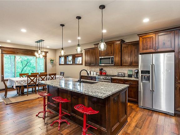 Is quality important? This is the home for you. This amazing custom built home is just waiting for a new owner. Walk into the entry of this home and see the beautiful wood trim that is throughout this home, the wall of windows in the living room and dining area overlooking the trees it backs to. Welcome the warmth of the fireplace or step into the private master bedroom w/en suite bath including a tile shower and heated floors. The kitchen with the over-sized island, granite tops, and SS appliances are sure to please. The walkout lower level with three more bedrooms, a bath, and rec room with wet bar will not disappoint either. Enjoy a summer evening on the covered deck. Irrigation and invisible pet fence, too. And, all that awesome shelving in the garageâwow! Must see this one!!