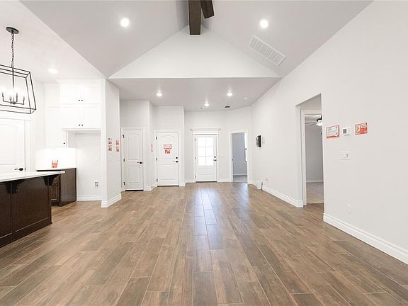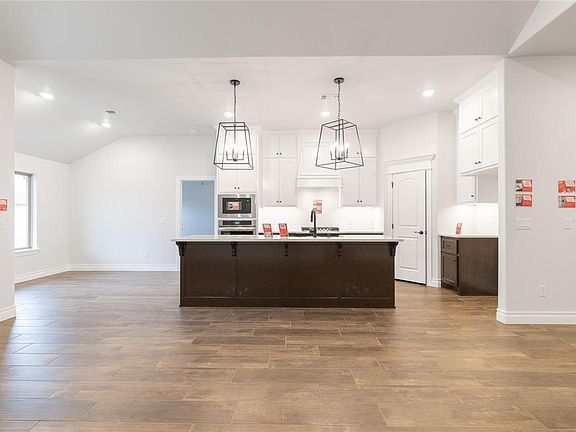 This Sage floor plan features 2,105 Sq Ft of total living space, which includes 1,850 Sq Ft of indoor living space and 255 Sq Ft of outdoor living space. This outstanding home offers 4 bedrooms, 2 full baths, 2 covered patios, a utility room, and a 3-car garage with a storm shelter installed. Because safety isn’t an option, Homes by Taber includes a roomy storm shelter in every home. The beautiful living room presents a beautiful cathedral ceiling with a ceiling fan, large windows, wood-look tile, a center stacked stone surround gas fireplace, rocker switches throughout, and Cat6 wiring. The kitchen supports stainless steel appliances, 3 CM countertops, stunning pendant lighting, a corner pantry, custom-built cabinets to the ceiling, more wood-look tile, and a center island equipped with a trash can pullout, a dishwasher, and a farm sink. The primary suite welcomes a sloped ceiling detail, windows, a ceiling fan, and our cozy carpet finish. Prime bath has a dual sink vanity, a free-standing tub, a walk-in shower, a private toilet, and a HUGE walk-in closet. Outdoor living welcomes a wood-burning fireplace, a gas line, and a TV hookup for your flatscreen. Other amenities include our healthy home technology, a tankless water heater, a fresh air ventilation system, R-44 insulation, and so much more!