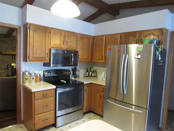 Terrific ranch in Country Club Estates. This 3br/2ba ranch on Tanglewood has so much to offer. Large open kitchen has spacious dining area, bar for additional seating, and new stainless appliances. Living room has vaulted, beamed ceilings, new laminate flooring, tile around fireplace and entry, and wood burning fireplace. The full unfinished basement has potential to be finished or used for storage. Laundry room on main floor, leads to 2 car attached garage with insulated door. Living room leads outside to screened patio and tree filled back yard. Seller is including a home year home warranty.