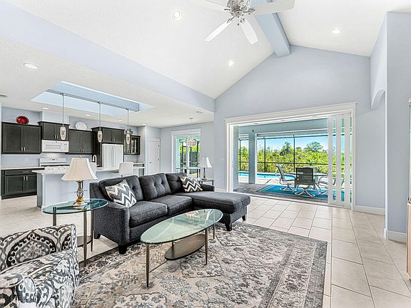 Built in 2019, this stunning 4 bed, 3 bath pool home is nestled in the Key West cottage style community of Cashel Village. Features include: Incredible kitchen w/ large dormer for natural light, sizable island, large pantry & beautiful quartz counters. Easily transition to indoor/outdoor living w/ the expansive sliders that open to screened pool area. Primary suite features a luxuriously large walk-in closet, quartz counter vanity & floor to ceiling tile in shower. Additionally, the property offers: Guest suite w/ full bath & pocket door that shuts off to the rest of the house, Entry w/ 15 ft ceilings, Living Room w/ Cathedral ceiling, Tray ceilings in the primary suite & dining area, craftsman style doors & casings, porcelain tile floors, 3 car garage, paver driveway & pool deck, impact windows, hurricane screens, gas range & pool heater, front porch w/ metal accent roof & privacy backing up to a preserve. Excellent location, Tons of amenities & HOA provides lawn care. Call Today!