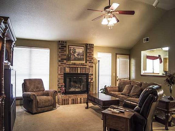 Remarkable find in Pebble Creek. Pride in ownership is evident. The seller is even replacing the carpet when they move out - the sample is in the living room. The master bedroom is a great size with double sinks & walk-in closet. The guest bathroom just went through a total remodel with a new vanity and tile tub/shower surround. The backyard is simply amazing with the great size covered patio - perfect for outdoor living PLUS a STORM SHELTER!
