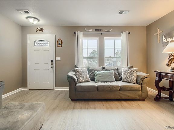 Wow single family home with large back yard and great patio for BBQ's. This home has lots of space to spread out in the living room, main floor flex space and a loft upstairs. Large Kitchen with plenty of cabinets and counter space, dishwasher, gas stove & microwave. Dining area off the Kitchen with Slider door to large back patio and just perfect backyard, and new landscaping! Upstairs you will find large loft, huge master bedroom with huge walk-in closet and private master full bathroom. Two additional large bedrooms and full bath. Money saving tank-less water heater! Attached 2 car garage complete this home. 2 blocks to new neighborhood park. Easy access to I76 and Brighton shops! This is a must see! It won't last!