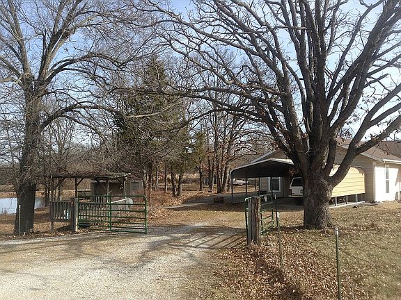This property would be perfect for a weekend getaway or live here year round. Approximately 1.4 acres m/l that is totally fenced for child and pet safety. This ranch home offers low maintenance exterior with vinyl siding and stone. Spacious living room/dining room combo with fireplace (gas or wood burning), kitchen has oak cabinets + gas range & refrigerator, 3 bedrooms and 3 baths. The Master Bath has walk-in closet, laundary room, a skylight, Whirlpool tub and separate shower. The second bath has Walkin shower, third bathroom has designer walkin shower with jetted shower panel. This home also has a pantry room, and bonus tv room. There are 2 outside hydrants, 2 camper spots both with water and sewer hookup, an 11x17 shed great for work shop with garage door and outside outlets in the front and back. A second 12x16 shed in drive way can be used for guess tiny house or country store. New roof 2019. Newly remodeled throughout. 2 car carport. Close to Mark Twain Lake beach and water park.