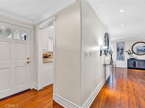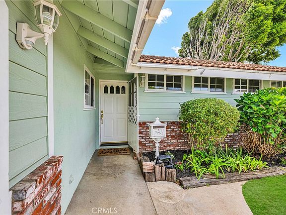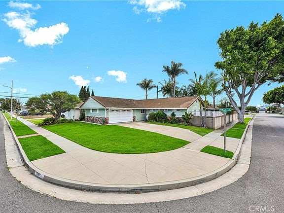 Absolutely charming single-story Stratford home featuring 4 bedrooms, 2 bathrooms, and 1,647 square feet of living space, nestled on a prime 7,303 square foot interior corner lot in a highly desired neighborhood, walking distance to Fountain Valley High School and McDowell Park. This lovingly maintained residence boasts a host of upgrades including central A/C, wood laminate flooring, dual pane windows, plantation shutters, crown molding, custom casements, extra tall baseboards, fresh interior paint, real wood French doors, raised panel interior doors, recessed lighting, wainscoting, ceiling fans, and a completely remodeled chef’s dream kitchen with granite countertops, travertine-style backsplash with inlay, breakfast bar, and white shaker cabinetry with under-cabinet lighting, glass display panels, and built-in wine storage. The kitchen opens to a spacious dining room and an elegant living room with a white brick fireplace, sconce lighting, and French doors with sidelights that lead to the tranquil tropical backyard oasis with a large lattice-covered patio, lush lawn, swaying palm trees, and an adorable white-picket-fenced gardener’s workshop with built-in counters and space for potting flowers and vegetables. There are two wide side yards, one with storage sheds, and the home exudes lovely curb appeal with manicured landscaping, brick siding, and a Spanish tile roof. Inside, the open-flowing floorplan radiates warmth and charm, while the primary suite offers a large walk-in closet and an en-suite bath with a wrap-around vanity, dual sinks, sit-down make-up station, tile flooring, and a walk-in shower with tile surround and clear glass enclosure. The upgraded guest bath features a granite countertop and a tub/shower combo with tile surround. A second set of French doors opens to the hall near the three guest bedrooms for easy backyard access. Close to award-winning schools, shopping, dining, and convenient freeway access.