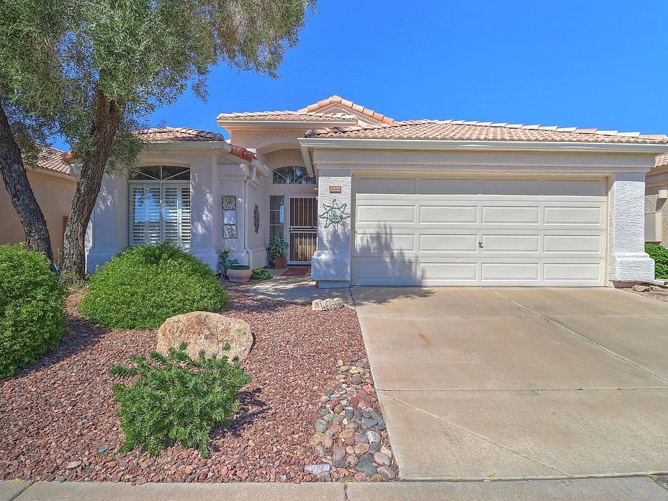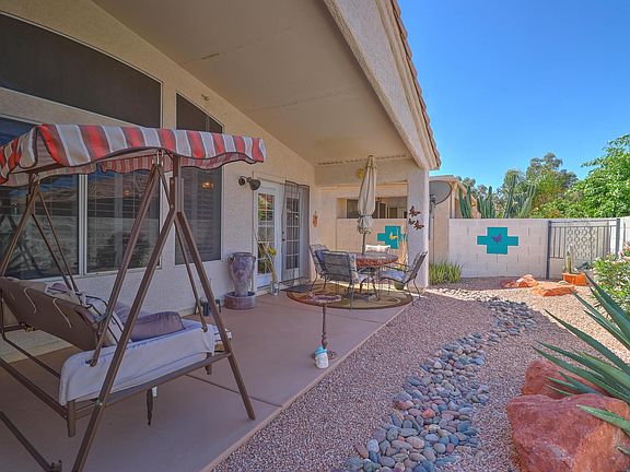 Great Valencia Model In Pueblo Village Offering 1427 SF In A Very Open Spacious Floor Plan. Granite Countertops In Kitchen and Baths, Cinnamon Maple Cabinets Throughout Throughout, A 20'' Diagonally Laid Tile Floors Throughout. All Appliances Are Included As Shown In Pictures. Nearly New A/C and Water Heater, Built-In Cabinets In The 2 Car Garage, Large Covered Patio, And Double French Doors To The Patio From The Breakfast Room and Master Bedroom. A Full-Sized Murphy Bed Conveys. No Other Furnishings Convey With Property. Hurry On This One. It Won't Last Long!