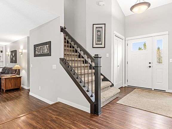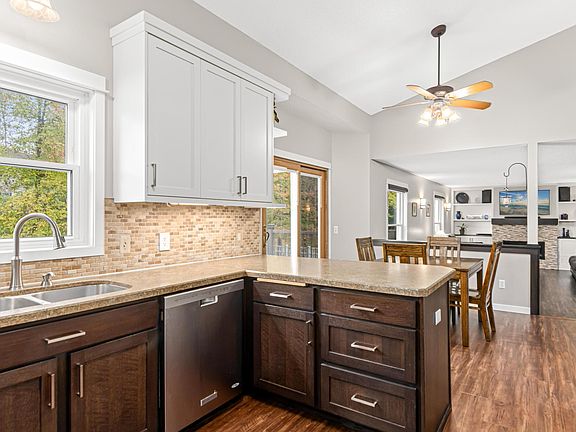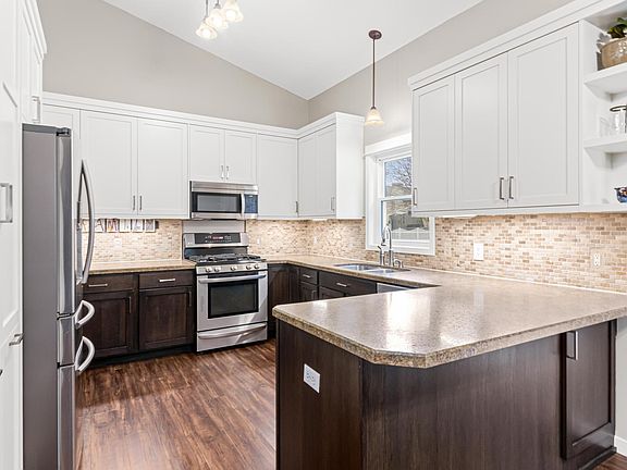 Discover a blend of classic charm and contemporary comfort in this 5-bedroom, 3-bathroom home. Nestled in a serene neighborhood, this property offers a spacious sanctuary with delightful features. Inside, find a tastefully updated kitchen and an abundance of natural light pouring in through the large windows. Recent upgrades include a new roof, siding, and gutters, providing peace of mind for years to come. The attached 3-car garage adds convenience and ample storage space. The lookout lower level features a generous family room with a cozy gas fireplace. Additionally, a bedroom and fresh carpeting make it a versatile area for guests, a home office, or entertainment space. Step outside to a private, fenced backyard with a low-maintence deck and a raised vegetable and herb garden. Located near schools, parks, shopping, and dining, this home offers easy access to major highways. New gray siding just installed.