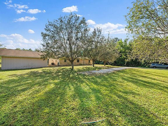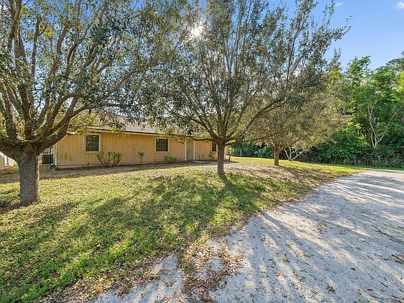 Charming ranch style 3 bedroom, 2 bath with detached 2 car garage. This 1.09 acre lot is conveniently located on a paved road and completely fenced in property. This home features large bedrooms with a split floor plan, over sized 448 sq ft back patio great for extra entertaining space. New roof, brand new AC, and all new windows were replaced with accordion shutters for storm protection. Enjoy the highly sought after Jupiter Farms community being located only minutes away from South Florida's famous beaches, dining, and shopping.
