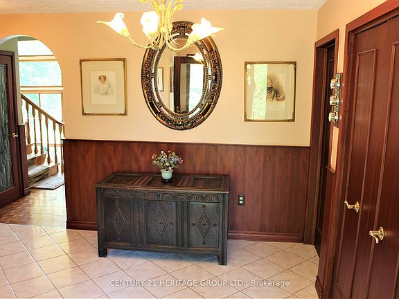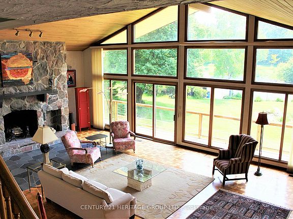 A stunning, secluded estate in one of the most desirable areas of Caledon, five minutes from Palgrave. This 7.42 acre property boasts two large, spring-fed ponds and extensive landscaped grounds with dozens of specimen trees, shrubbery and gardens. It also includes a tennis court, large golf green and pool. The European-designed, custom-built home has a spacious open-concept floor plan featuring a spectacular great room with a 16-ft. cathedral ceiling, a wall of south-facing windows and sliding glass doors overlooking the grounds, and a towering fieldstone fireplace on the main level. This level also includes the dining room, kitchen, and cozy library with a gas fireplace. On the upper level, the large principal bedroom has a beautiful ensuite with a walk-in marble shower and garden doors to a rear patio. Lower level with full walkouts features a large recreation room with a wood-burning fireplace and a spa with hot tub and sauna. Do Not Miss Out on viewing this Gem!