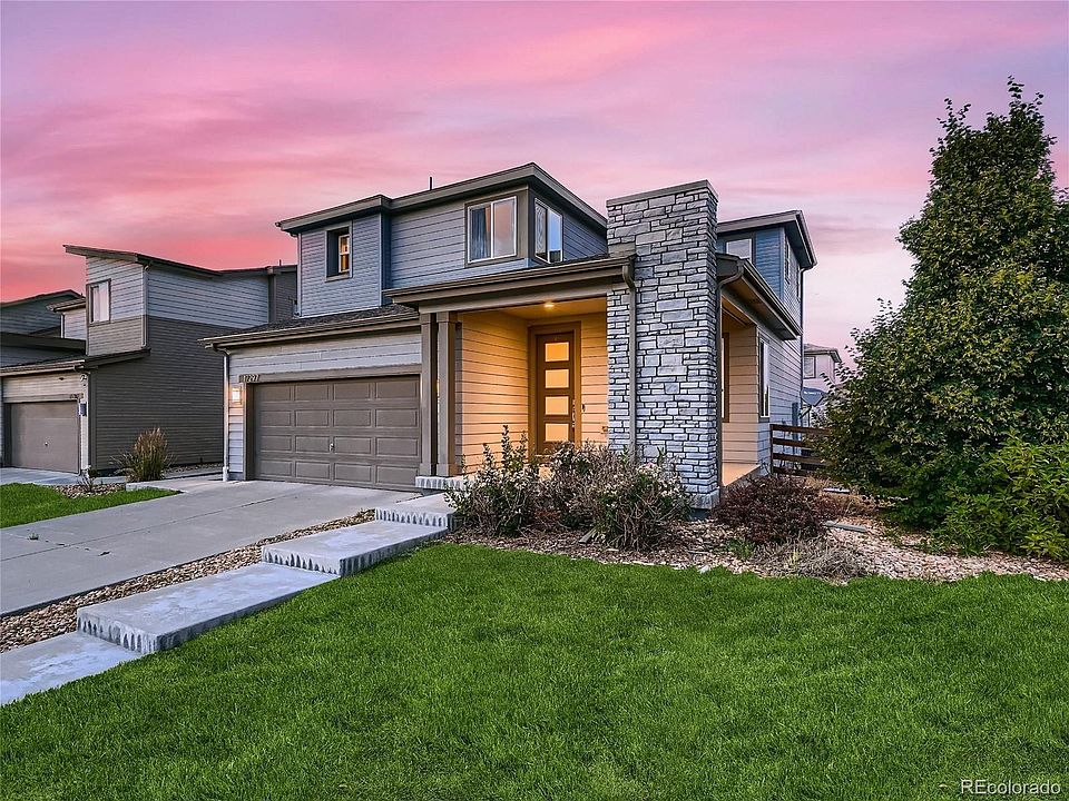 **NEW! $15,000 credit to buy down your interest rate!** Welcome home! This well-appointed 3 bedroom, 2.5 bathroom home sits on a corner lot in Reunion, one block from Reunion amenities. Start at your covered front porch and enter into a generous foyer that flows into the dining room, which could also serve as an office area or sitting area. You'll notice that the main floor boasts laminate vinyl plank throughout, high ceilings, and an open concept floorplan -- perfect for entertaining. The large kitchen provides lots of cabinet space, granite countertops, and a huge island with breakfast bar. The kitchen flows into the living room with large windows that let in a ton of light. A half bath and 2-car garage complete the main level. Up the stairs, you'll find two secondary bedrooms connected by a Jack-n-Jill bathroom, with a sink space separated from the private tub and commode space. Continue down the hallway, past the laundry closet, and enter your spacious primary suite. Lots of light, a large walk-in closet, dual vanity, large shower, and private commode space make this the perfect retreat. The basement is unfinished and ready for your creative touch with wrapped insulation, egress window, rough-in, under-stair storage and large crawl space. In your private backyard, enjoy maintenance-free turf and low-maintenance landscaping. Because this home sits on a corner, you get to enjoy extra lot space on the side yard and distance from the neighbors. The driveway is South-facing and with no direct neighbor to the East, you'll enjoy lots of light throughout the day. Just one block away is the Reunion Rec Center, Reunion Park, Coffee House, pool and playground. Minutes to DIA and I-70, but feeling a world away, come check out Reunion and take a look at this home's 3D virtual tour: www.ReunionLiving.info