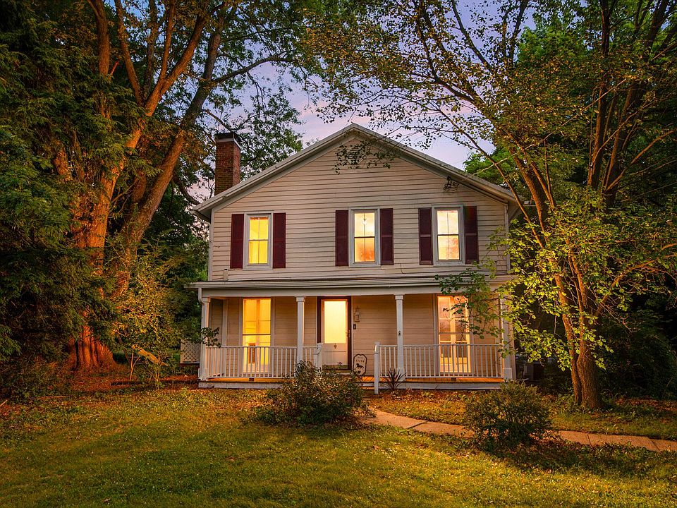 Welcome to your charming circa 1852 farmhouse mere minutes from the heart of town. The porch and wraparound deck greet you as beautiful wood floors lead the way from living to dining to kitchen under arched doorways. Enjoy built-in bookshelves and the wood-burning fireplace. The cabinet-filled kitchen with granite countertops and stainless steel appliances leads to the sunroom and main-level laundry/bathroom. Upstairs find 3 bedrooms and a full bath. The primary suite's enormous walk-in closet could be converted into a 4th bedroom. Outside enjoy the deck, fenced-in garden, 2-car garage, and mini barn on almost 1 acre of shady land. Sellers are offering a home warranty from APHW for $650.