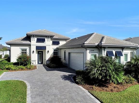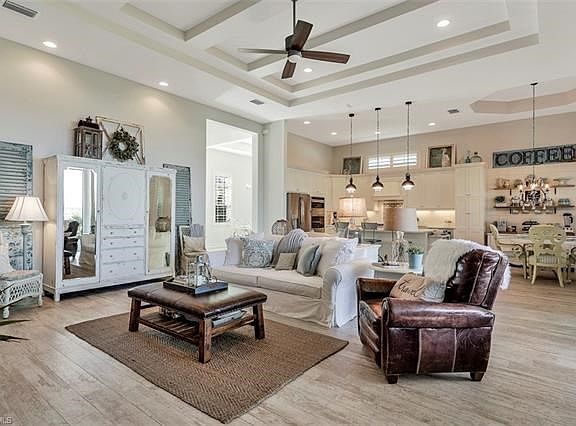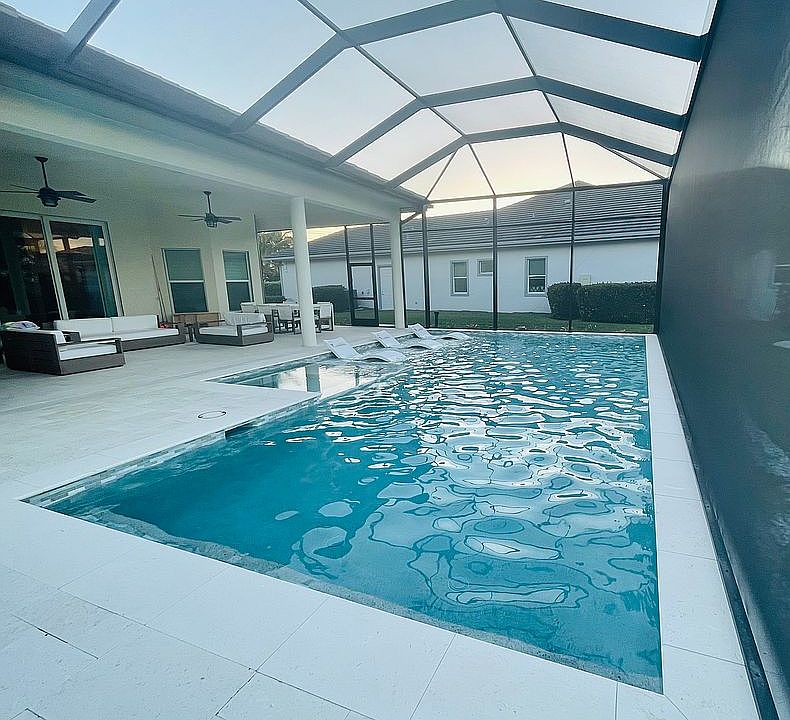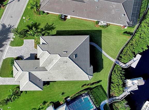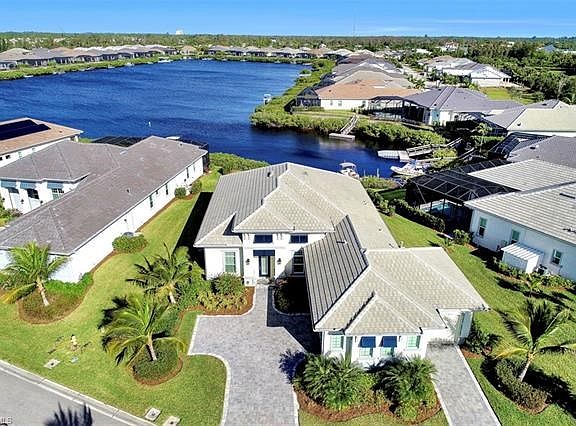 Gulf Access home in one of S. Fort Myers best kept secrets. This Biscayne Model located in Hidden Harbor Estates is a light and bright "Coastal Modern" home with an open concept floor plan over looking your own private boat dock on the harbor. Just a 30 min boat ride to Estero Bay/Lovers Key via Ten Mile Canal and Mullock Creek. The kitchen is loaded with upgrades such as GE Profile stainless steel appliances, Quartzite counter tops, custom subway tile back splash, farmhouse sink and a GE Monogram built in beverage center. 12' tray ceilings compliment the great room, breakfast nook, dining room and study. Master suite is enhanced by 10' tray ceilings, wall to wall windows offering a spectacular view of the harbor. The spa like master bath has a soaking tub, frameless shower enclosure and separate vanities with marble counter tops. High impact glass windows and doors are dressed with custom plantation shutters throughout entire home. Soak in the included Hot Springs Highlife Saltwater Spa on the huge covered lanai and watch the Manatee play after a long day out on the water. Community clubhouse offers heated pool, workout room and outdoor kitchen. Plenty of room to add pool.