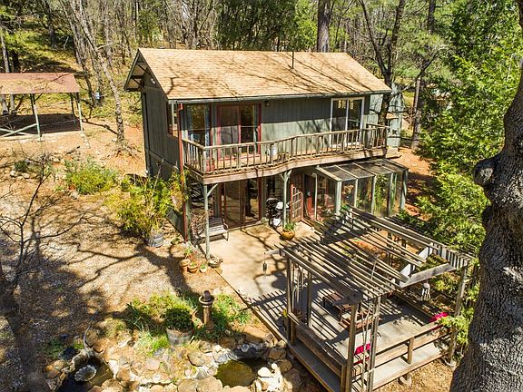Beautiful views from the private retreat just outside of Grass Valley.The 896SF cabin could be your respite! Equipped with a cozy wood fireplace & overlooking the Serene gazebo & waterfall w/Koi Pond. Grow your own food with lrg private fenced garden which is home to many food trees.This 7.96 Acres could make the perfect site for your custom home.BLDGS & a variaty of sizes & uses our spread across the property.Guest Quarters w/outhouse could be used as airbnb/rental.Granite KITCHEN & TILE FLOORS