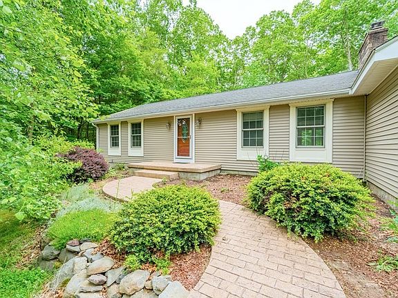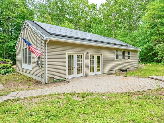 Welcome to this peaceful and comfortable ranch on Agricultural Ave. Remodeled with an addition in 2014 this home has three bedrooms and two and a half baths, hardwood floors, propane baseboard heat, new appliances with built in stove and wall oven, stone topped island, tile backsplash, fireplace and first floor master with en suite. Three season room off the side patio could be used all year around or maybe you could turn it into a garage ?! The extra space in the partially finished basement with half bath and three bedrooms on the first floor gives your plenty of space. The yard features mature and professional landscaping and hardscaping. All this and abutting to conservation land! Solar panel contract is assumable by the buyer.