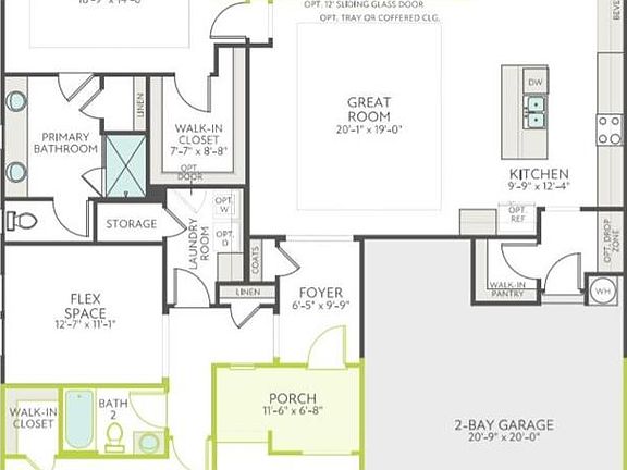 The kitchen has been upgraded to feature all gas burners, upgraded stainless steel appliances, white kitchen cabinets, white ash backsplash tile, all tied together by the stunning white quartz counter tops. The dining room has a beautiful 6' sliding glass door connecting you to the screened porch. The entire home has upgraded luxury vinyl plank flooring, including bedrooms, which certainly helps with allergies in the pollen seasons. Both full bathrooms have been upgraded with stunning granite countertops, with the primary bath featuring tile walls in the shower. The home also features the full Smart Home Package. Flex room can be used as an office or sitting area