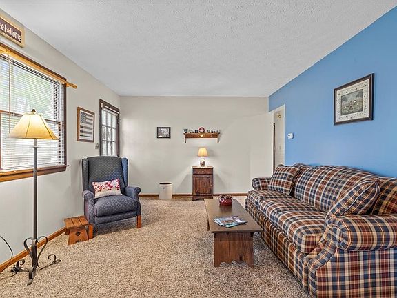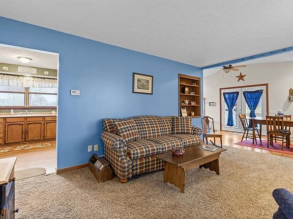 Enjoy the country life in this charming ranch home situated on 5 picturesque acres. Soak in the peace and tranquility from the inviting covered porch. Step into the spacious living room with a neutral color palette and built in shelving. The living area is filled with natural light from the large picture window. Entertain with ease as great sight lines carry you into the dining room with gleaming hardwood laminate flooring and vaulted ceiling. Preparing meals will be a delight in the large eat in kitchen with an abundance of cabinetry and counterspace. Down the hall you will find the primary bedroom and 2 generous-sized bedrooms that are light and bright with ample closet space. The updated full bath features a tub/shower combo with ceramic tile surround. The unfinished lower level provides plenty of room for storage, laundry room, mechanicals and a 1 car integral garage. Fully separate outbuilding 68x30 provides you ample opportunities to bring your animals or to run your business.