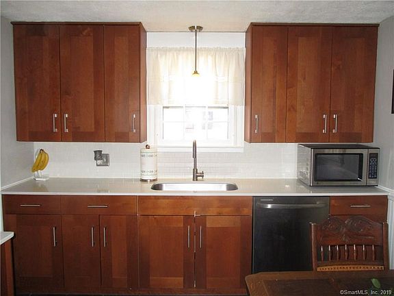 This home is ideal for those just starting out in home ownership. Very well maintained over the years with many items being updated over the time current owners have been here - roof, kitchen, appliances, bathroom and gas furnace. The kitchen was tastefully remodeled with slate tiles, stainless appliances, corian counters and soft close ceiling height cabinets. The mudroom off of the kitchen is a desirable space to have for removing dirty shoes and hanging coats. The bathroom has also been remodeled beautifully with modern subway tile and grey vanity. The dining room and living room both have beautiful built-ins and hardwood floors. Bedrooms are generous in size. Andrew Avenue school is across the street and the town center with restaurants, places of worship, stores are all minutes away. A great condo alternative Call today for a private showing