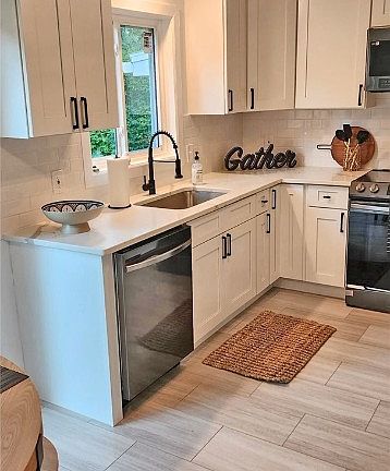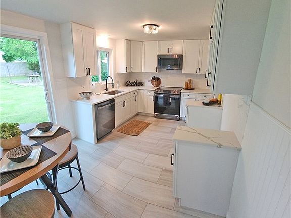 Picture perfect exterior with new vinyl siding accentuated by stone front. Stunning interior with new white kitchen with shaker style self stop and closing cabinets. Beautiful white quartz countertops. Totally remodeled full bathroom with egress windows, sliding glass door to patio and mostly fenced in yard. Rear storage area attached to house freshly painted. Restored hardwood floors. Vinyl replacement windows, adds to value and comfort of this home.