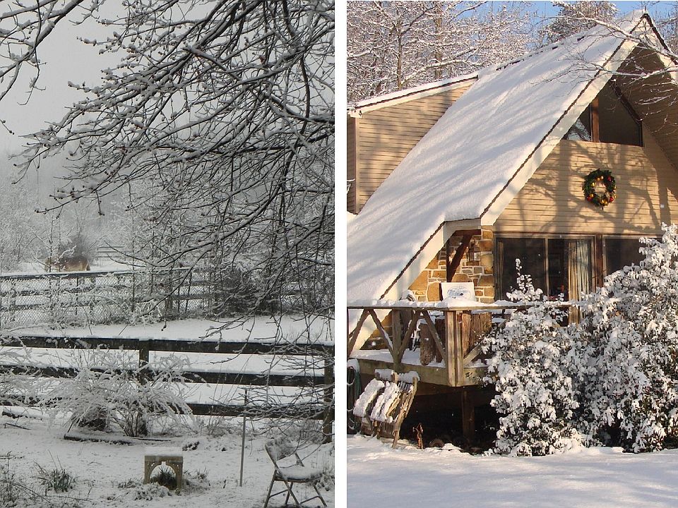 1 1/2 story A Frame with front and attached side deck, stone facade front and oversize (3 flue) chimney. Cathedral ceiling great room with wood burning raised hearth FP. Kitchen with eat-in area counter height charcoal fireplace for grilling. Two main floor bedrooms and hall bath, den/library with side deck, and laundry closet. Spiral staircase to Loft overlooking great room, separate en suite bedroom, with walk-out balcony.