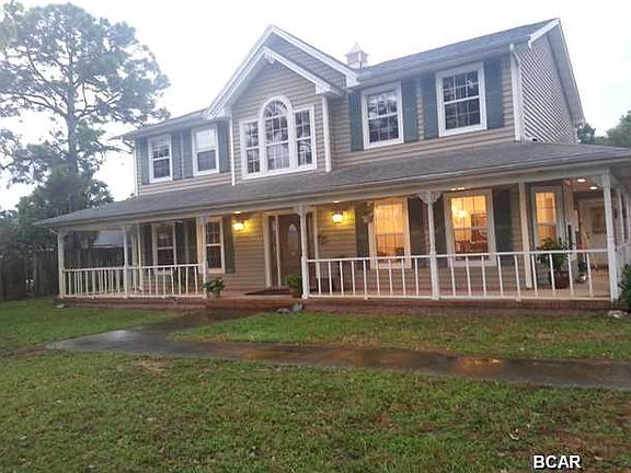 Five Bedroom home situated in Grand Lagoon Shores Subdivision. A beautiful Floridian home with over 650 SF of covered wrap around porch. Property is situated on a .496 acre lot. Features included; 1st Level Living Room/Great room with gas fireplace; separate dining room; large kitchen with eat in area; laundry room; 1/2 bath; Master bedroom and Master Bath; (with double vanity; whirlpool tub and separate shower; large walk in closet.);