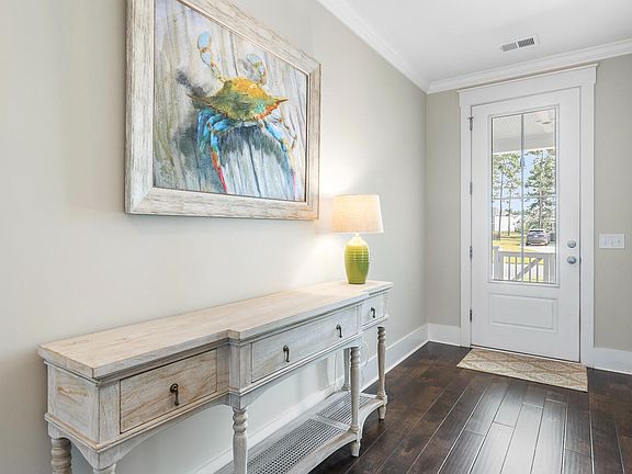 **Ask about the possibility of receiving 1% reduction in interest rate and free refinance.** So you can buy this amazing home now and save even more later! This amazing opportunity won't last long! Ever wanted to live with a water view? This is the only home for sale in the Coves with a water view! Sellers are now offering rate buy down assistance as well for this stunning 3-bedroom retreat that offers a perfect blend of modern elegance and functional design. You will love the well designed floorplan with a master bedroom tucked away in the back of the home. An oversized pantry with an office nook.Step inside, you'll immediately appreciate the thoughtful layout of this home. The large master bedroom, strategically positioned towards the back, ensures your privacy and convenience.With an open floor plan that seamlessly flows into a spacious gourmet kitchen, this home is an entertainer's paradise. With tons of natural lighting, you are going to love the sunset views as well. The kitchen boasts a generous island surrounded by your white cabinetry, built-in oven, microwave, making it a culinary haven for any chef. A large pantry room and an adjacent office nook provide additional functionality and storage space. Every detail in this home exudes quality and craftsmanship. You'll notice the exquisite craftsman trim package, tall ceilings, tasteful ceiling fans, custom lighting, and custom closet organizers in every bedroom. The plantation shutters and blinds throughout add a touch of southern charm and sophistication. This home is perfectly situated on a premium waterfront lot, offering serene views and tranquility. The professionally landscaped yard is a lush oasis, and the custom paver patio in the backyard provides an ideal spot for grilling or stargazing. The convenience of an underground sprinkler system, installed gutters with gutter guards, and a fully enclosed metal fenced backyard make this home a low-maintenance haven. Practicality meets efficiency with a tankless water heater that receives regular maintenance and an annually serviced HVAC system. You can enjoy peace of mind knowing that your home is equipped with top-notch systems. Beyond the luxuries of this home, The Coves of Cane Bay Plantation offers an incredible lifestyle. Access to the pristine lakes of Cane Bay, miles of community trails, and a welcoming community pool with a pool house kitchen await you. Additionally, the boat dock for electric boats or kayaks provides endless opportunities for outdoor adventures. Don't miss the chance to make this exceptional property your forever home. Schedule a showing today and experience the epitome of Southern living in The Coves of Cane Bay Plantation. Your dream home awaits!