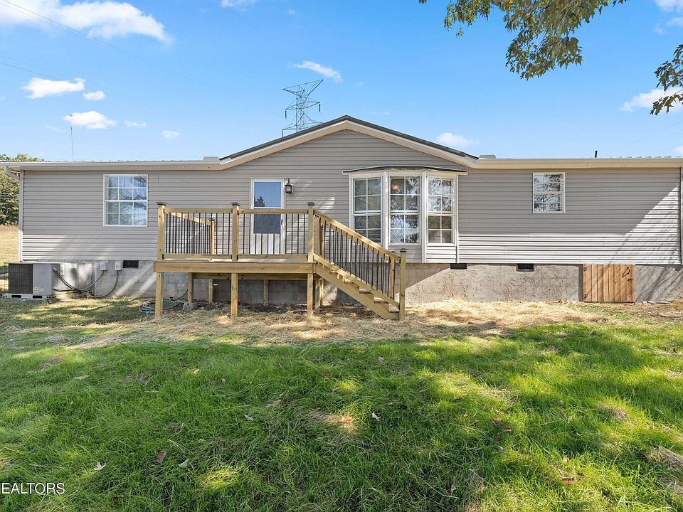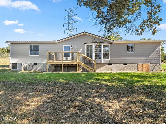 Check out this beautiful home sitting on an acre! Welcomed in by the new deck (2023) where you can enjoy the gorgeous mountain views, you'll find a spacious living area with a wood burning fireplace as the focal point. In the kitchen/dining area you'll find an abundance of cabinets and counter space with a rich butchers block counter and a kitchen island! The dining area provides direct access to the freshly poured back patio (2023). In the primary suite you'll find a larger closet, a soaker tub, double vanity, and private additional cabinet space. All bedrooms have ceiling fans. Enjoy many recent updates to this home including brand new vinyl siding (2023), fresh paint throughout the entire home (2023)! This house is ready for you to make it a home! **There is a well on the property, but currently the home runs on public water. On permanent foundation.