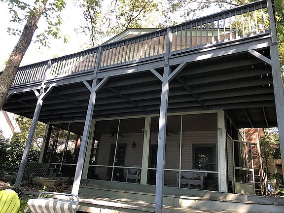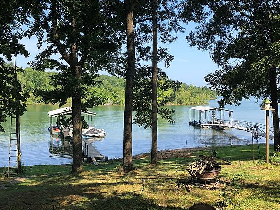 Charming lake getaway w/lots of room on level lot. Short walk to covered one slip dock situated in wide cove. Main Level offers 3 BR 3,5bath, Great Rm w/ lots of windows, country kitchen, dining area w/ fireplace and Florida Room overlooking the lake. Open staircase to finished basement w/full bath and 1 bedroom anf great room with storage. Large screen porch off basement level. Dock with 2 jet ski ramps. New roof & updates throughout house in Spring of 2016. Furnished & ready for you to enjoy! Less than 10 minutes from I85 and 1/2 mile to Rock Springs boat ramp.