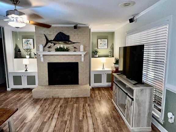 Located on the beautiful North end of Roanoke Island, this brick ranch is a must see! Sitting on a large lot in an x flood zone, the fenced in backyard is perfect for pets or a family. The property features a workshop and a storage shed with a lean-to, just the right size for a boat or vehicle. Other outdoor additions include an outdoor shower and nice covered back decks perfect for enjoying the backyard or entertaining family and friends. As you enter the home, you will find a beautiful foyer with tile floors leading you into a spacious living room with a brick gas burning fireplace and built-in shelving. Off of the living room you will enter the dining room and beyond that, the kitchen. The kitchen has stunning wood cabinets, a gas stove, and other updated appliances. Through the kitchen you will find a very large den, great for relaxing with family, or a perfect area to repurpose as a playroom, home office, or home gym. Located down the hallway are 3 large bedrooms, including an ensuite, a second bathroom, and two linen closets. Along the back of the house, through the living room, you will access a nice sized sunroom with custom storage cabinets and a separate laundry room with counter space and a utility sink. This lovely property is in a prime location on Roanoke Island with walking/bike baths and proximity to boat ramps, schools, and only a short walk from historic downtown Manteo. Call us today for the opportunity to make this home your very own!