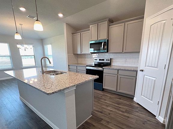 Welcome to the Prescott floorplan at Creekfall, this beautiful single story 2 car garage option home in Burnet, Texas is just what you have been looking for. Inside this beautiful 4-bedroom, 2.5 bathroom floorplan, you’ll find approximately 1,953 square foot home that makes the most of its space. The living area is an open concept, where your kitchen, living, and dining areas blend seamlessly into a space perfect for everyday living and entertaining. The kitchen features flat panel birch cabinets and quartz countertops, with decorative tile backsplash. Enjoy the open dining area that is connected to the covered patio for you to enjoy the views of nature from the backyard. The primary bedroom features an attached primary bathroom with a walk-in shower that includes a separate garden tub and shower, and a spacious walk-in closet that allows easy access to the laundry room. The secondary bedrooms are spacious and carpeted, with easy access to a secondary bathroom. With the game-room, study, or bedroom option, this plan allows you to customize to your needs. You’ll enjoy the smart home technology that is built into every D.R. Horton home. There’s no reason to wait, come look at the Prescott floorplan today!
